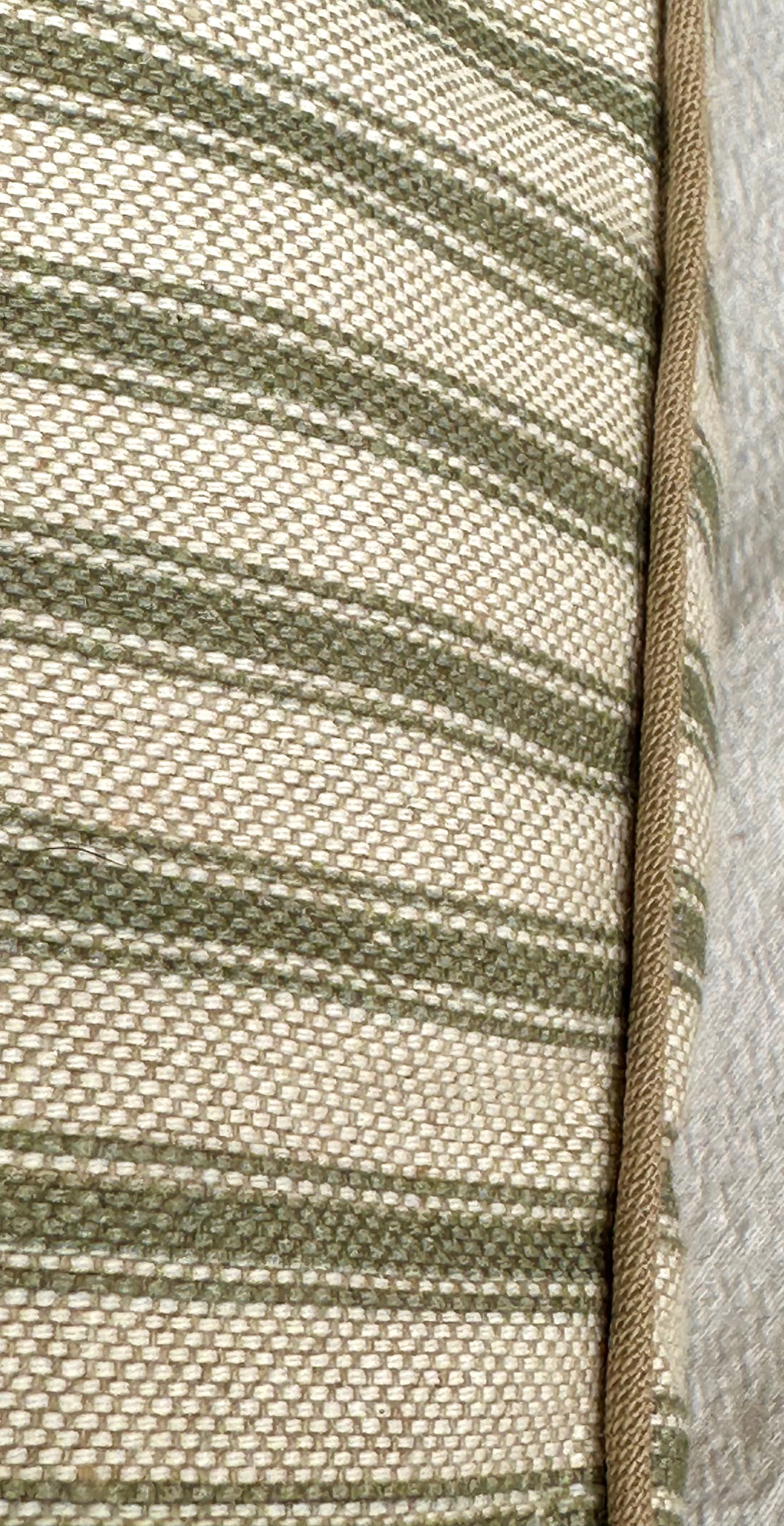 The beautifully crafted Mawnan cushion features a soft olive and beige narrow stripe design, offering a fresh, natural aesthetic for any room. The neutral tones blend seamlessly with a variety of interior design styles, while the subtle beige piping adds a refined touch of elegance.