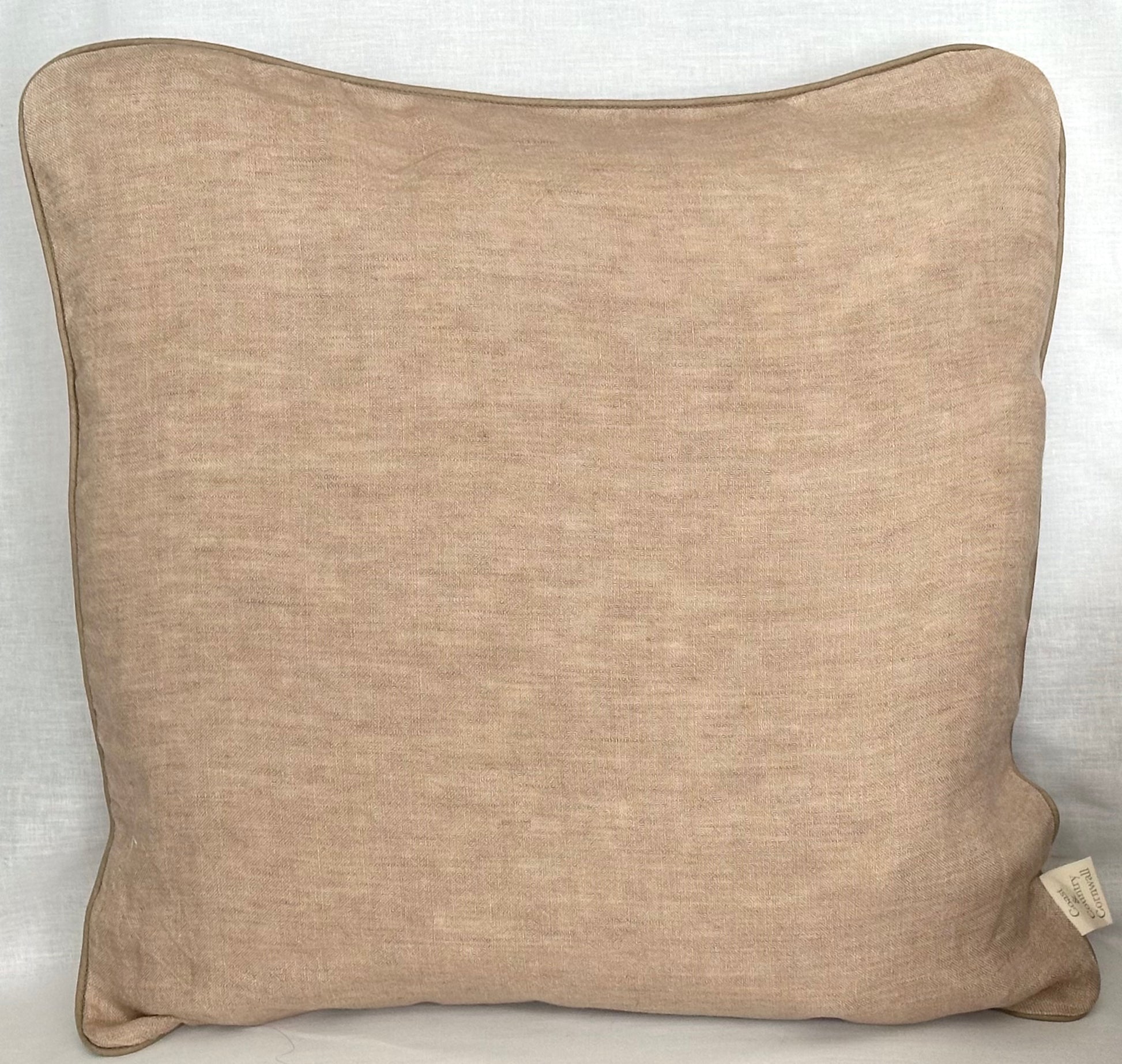 The Duporth linen cushion in a versatile vintage inspired neutral beige linen with a subtle piped edge that exudes an effortlessly aged aesthetic, which is a muted, worn in look bringing a cosy nostalgic feel to any room.